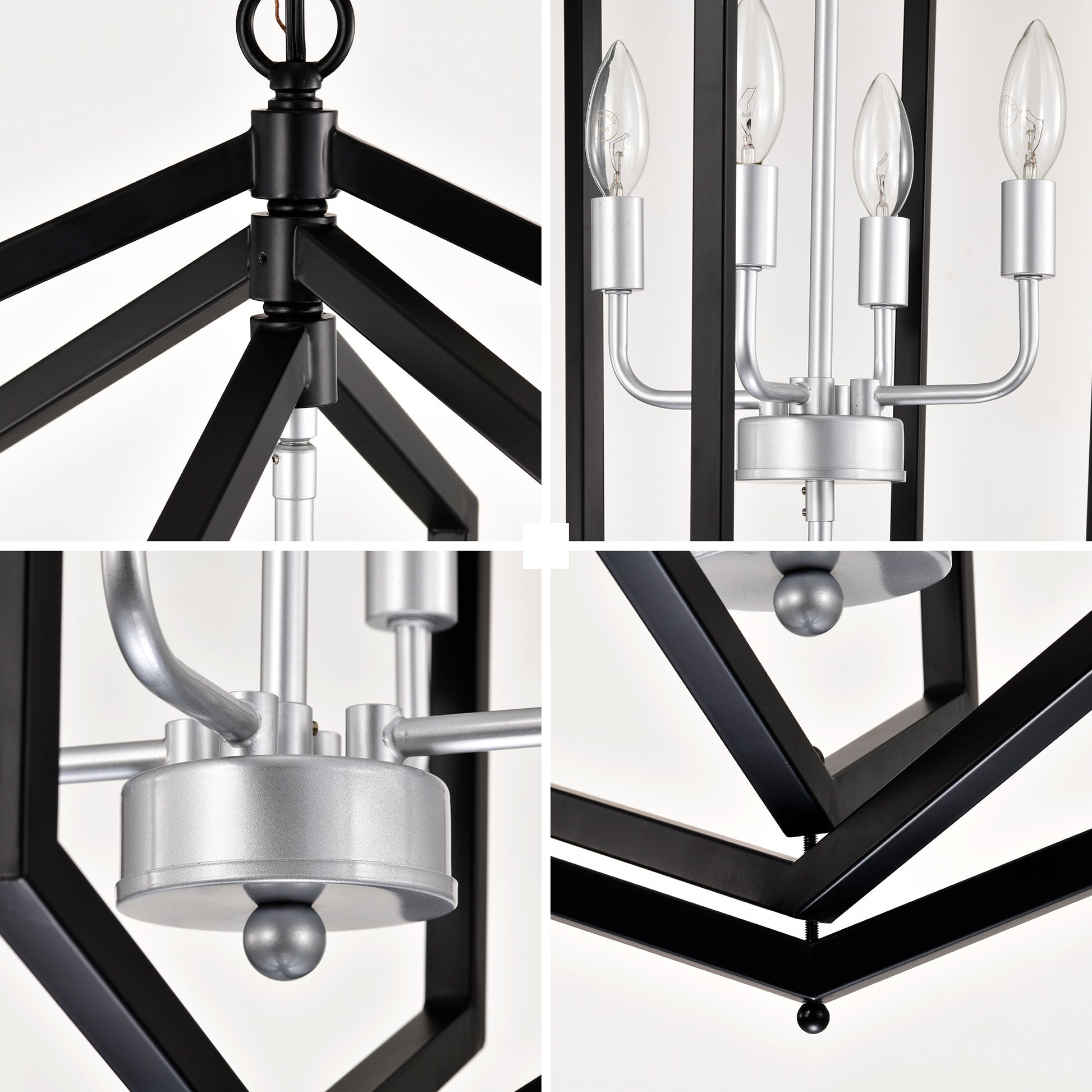 - 【Unique Chandelier】 The pendant lights kitchen island features a lantern shape with matte black finish and Sliver finish, offers a rustic yet modern vibe. With its beautiful design, this ceiling hanging light will be a focal point in any area. Perfect for dining room, kitchen, living room, bedroom, office conference room or areas with high ceilings like foyers or entryways, stairways.