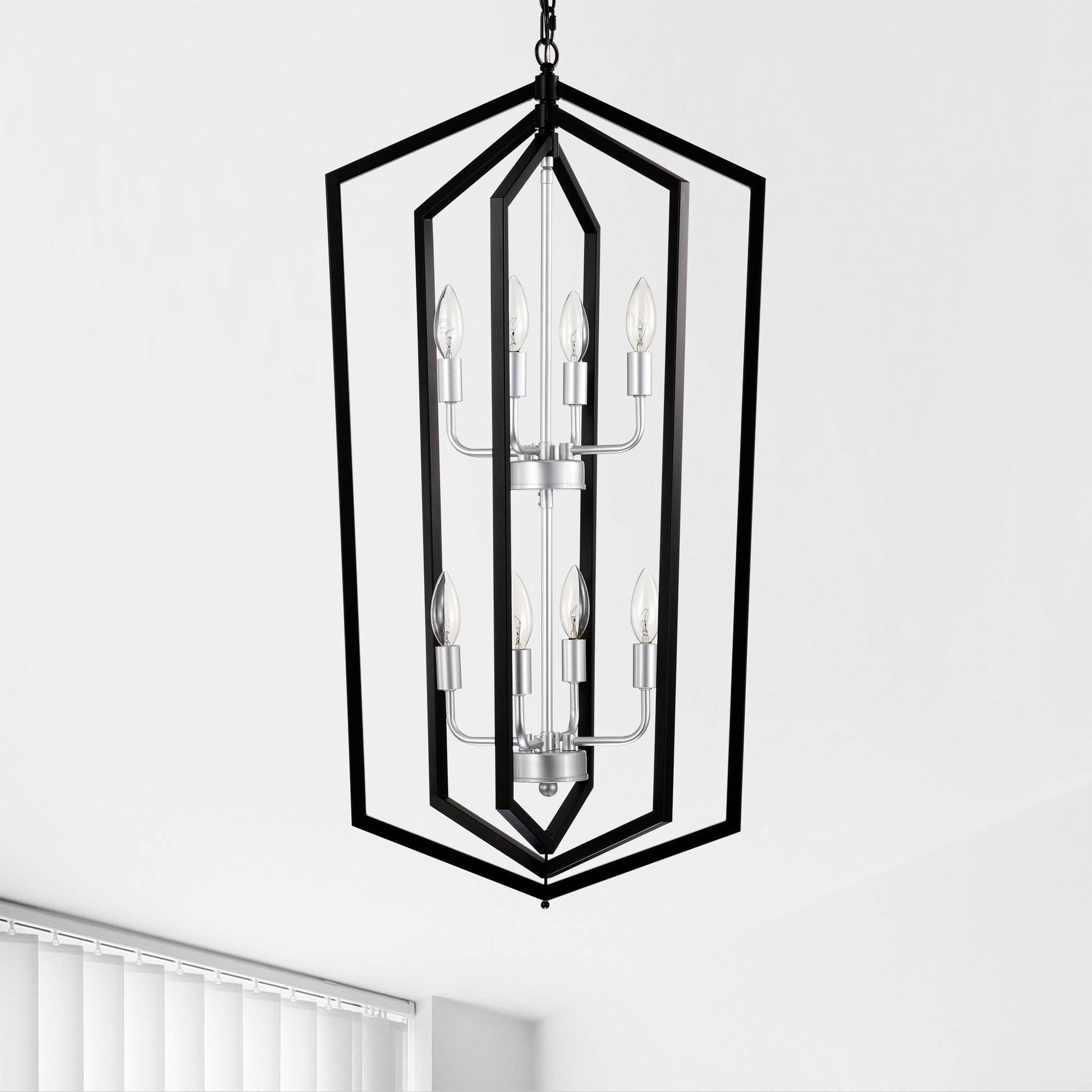 8-Light Farmhouse Kitchen Chandeliers, Matte Black And Sliver Vintage Rustic Cage Light Fixture Adjustable Height Chandeliers For Dining Room Hallway Foyer Entryway E12 Bulbs Not Included