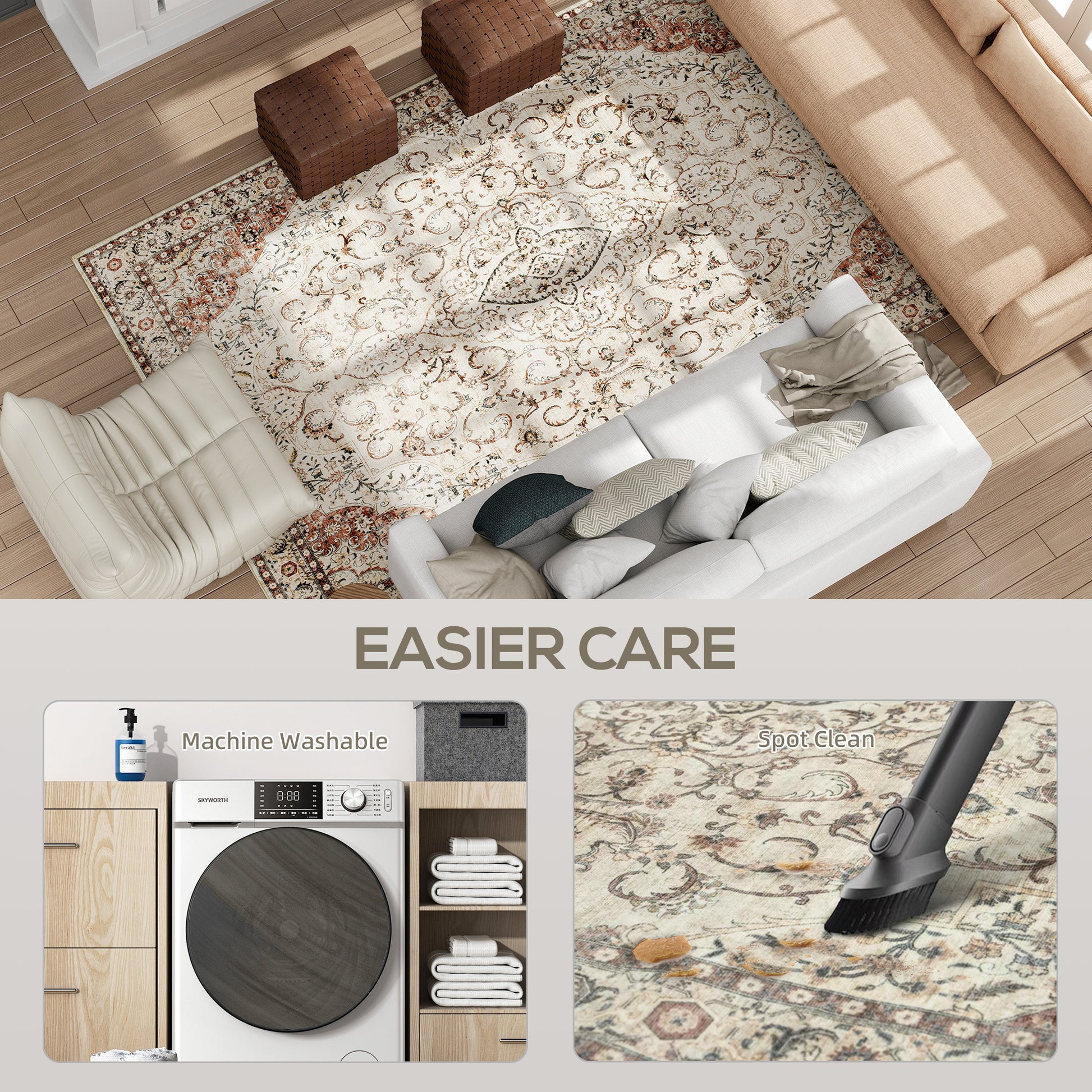 Winslow Area Rug 8x10, Machine Washable Rug, Non-Slip Classical Floral Print Floor Carpet For Living Room, Bedroom, Mixed-Brown