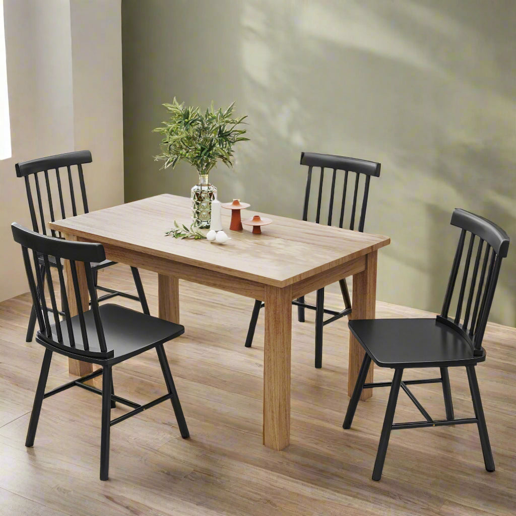 Dining Chairs Set Of 4, Farmhouse Wood Kitchen Chairs With Rubber Wood Frame, Spindle Back For Dining Room, Black
