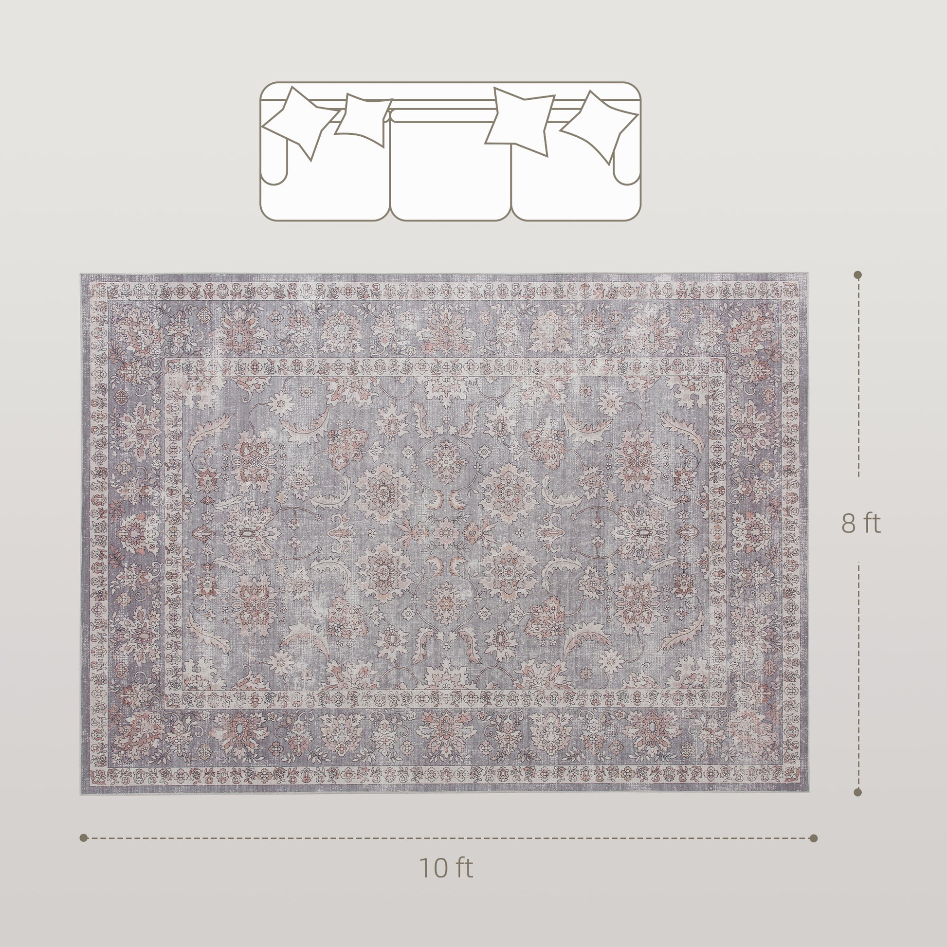 Eleanor Brown Machine Washable Area Rug 8x10, Non-Slip Traditional Flower Print Floor Carpet For Living Room, Bedroom, Grey And Brown